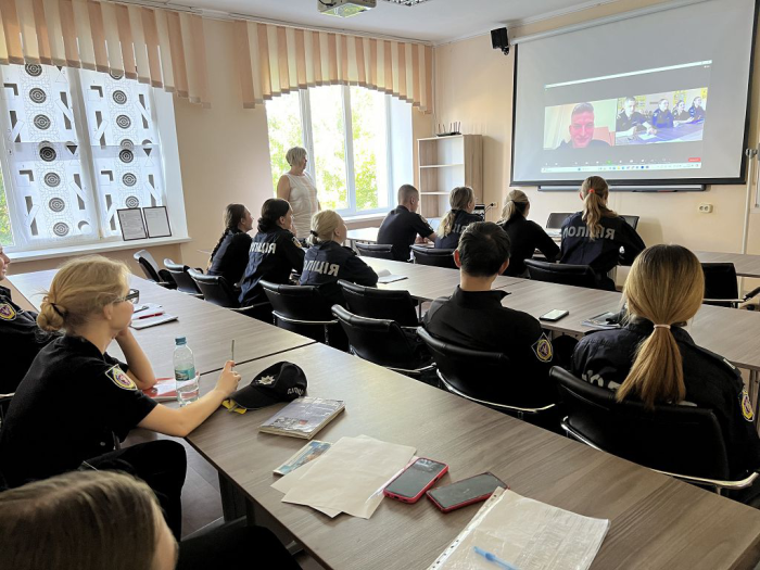Старший психолог сектору кадрового забезпечення Каховського РВП ГУНП в Херсонській області лейтенант поліції Валерій Крівуля і професор кафедри педагогіки та психології факультету № 3 Світлана Харченко провели бінарне практичне заняття з навчальної дисципліни «Психодіагностика» для курсантів 3 курсу, які навчаються за спеціальністю «Психологія». Здобувачі освіти розглянули особливості використання імпресивних проективних психодіагностичних методик у практичній діяльності психолога в поліції. Особлива увага була приділена тесту кольорових виборів М. Люшера.