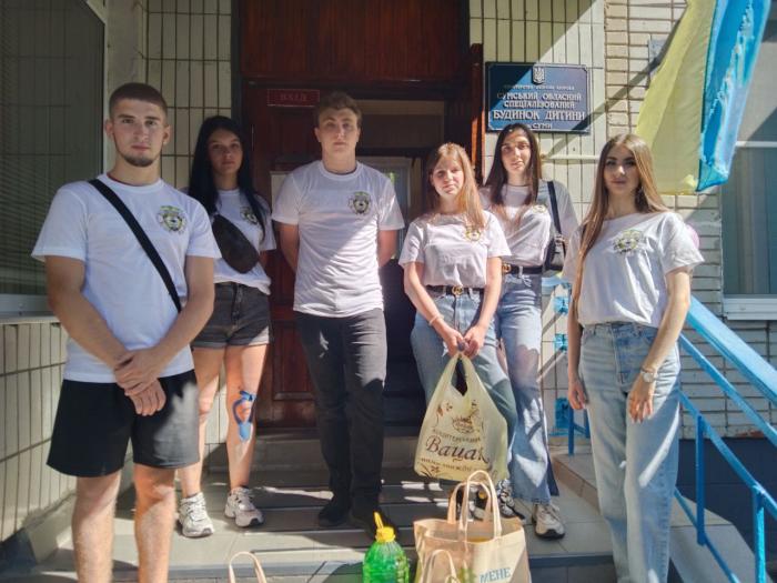 У межах благодійної акції «Подаруй дитині радість» студенти першого курсу Сумської філії ХНУВС Альбіна Антоненко, Вероніка Мігаль, Юлія Павленко, Катерина Красій, Віталій Кийков, Богдан Бараненко разом із провідною фахівчинею Ганною Мітітєл відвідали Сумський спеціалізований будинок дитини. Волонтерська команда привітала малечу зі святом дитинства, допомогла вихователям із дозвіллям найменших вихованців на свіжому повітрі, поспілкувалася з адміністрацією закладу щодо подальшої співпраці. Від студентського самоврядування здобувачі вищої освіти передали малечі подарунки, солодощі та найкращі побажання миру і щасливого дитинства. Цей візит вкотре запевнив молодь, що навіть невеликі кроки можуть зробити великі зміни у житті дітей, які потребують підтримки та турботи.
