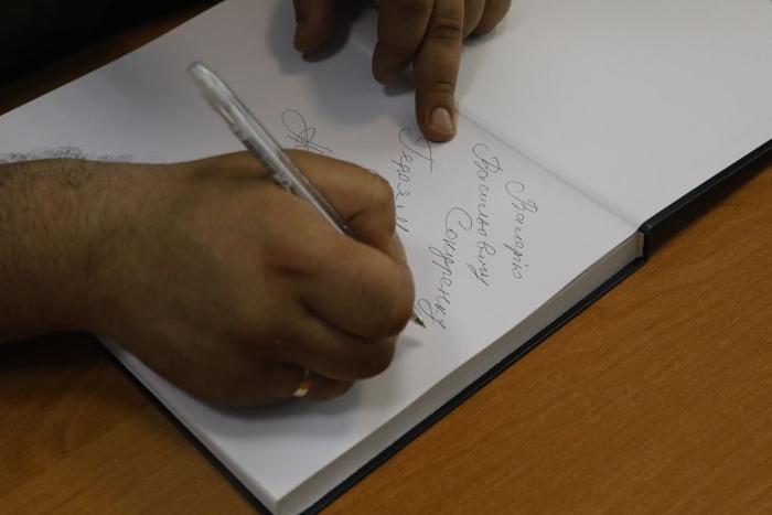 На згадку про творчу зустріч проректор ХНУВС Сергій Бортник подарував учасникам проєкту книгу «Світло в кожному з нас», видану університетом, яка розповідає про те, як війна вплинула на діяльність та життя колективу університету.