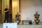 Як зазначив Денис Соколов, «Гвардія наступу. Самовидець» – це книга про героїв, які впродовж третього року повномасштабної війни дають нам віру у власні сили, щоб боротися за свою свободу і незалежність, залишатися сильними та мужніми». Видання, що презентується сьогодні, присвячене битві за Київ. Автор описав, як звичайна людина, яка долучилася до війська, проходить складний шлях воїна, який впевнений, що немає важливішої мети, ніж оборона нашої держави. «Ми хочемо донести це до курсантів, – зазначив Денис Соколов, – які завтра прийдуть на зміну, а також показати, що герої України – вони серед нас. Це живі люди, а не забронзовілі статуї, чоловіки й жінки, для яких не байдуже майбутнє України. На жаль, юнаки та дівчата, які опановують професію поліцейського, не з чуток знають, що таке війна, російська агресія. У багатьох із них батьки воюють на фронті, деякі втратили рідних, і під час таких зустрічей курсанти відчувають, що потрібні державі, людям навколо – так встановлюється тяглість поколінь. Вони знають, що є побратими, до яких можна звернутися за досвідом».