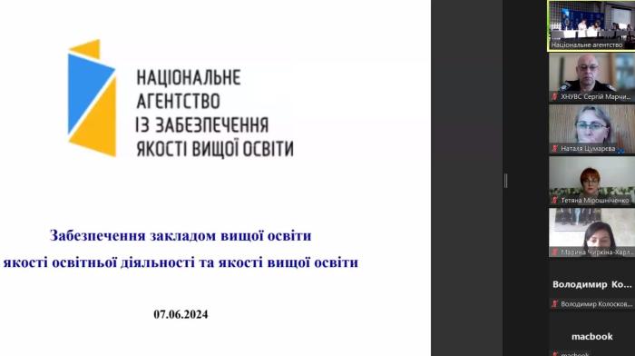 Представники Харківського національного університету внутрішніх справ взяли участь у тренінгу, проведеному Національним агентством із забезпечення якості вищої освіти у партнерстві з Міністерством внутрішніх справ України. Тренінг був організований для гарантів освітніх програм і керівників відділів забезпечення якості у гібридному форматі на платформі Zoom, від університету в online форматі також долучилися представники навчально-методичного відділу, навчальних підрозділів.