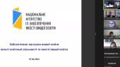 Фахівці Національного агентства висвітлили питання правового регулювання акредитації освітніх програм, вимоги до закладів вищої освіти щодо забезпечення якості освітньої діяльності та вищої освіти.