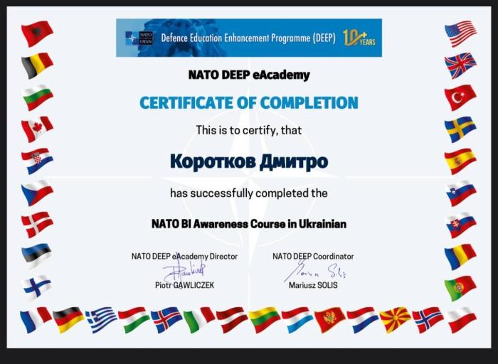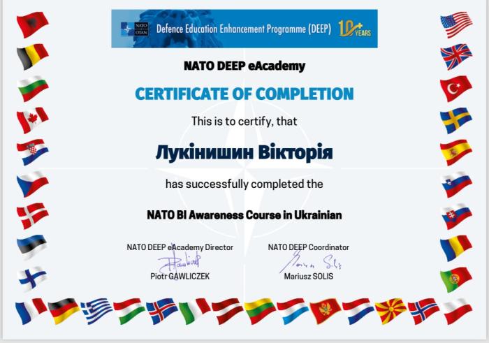 Професорка кафедри теорії та історії держави і права факультету № 1 Юлія Загуменна разом із кураторською групою провела виховну годину, у межах якої курсанти пройшли онлайн-курс, розроблений експертами Програми НАТО щодо зміцнення доброчесності. Курс «NATO BI Awareness Course in Ukrainian» спрямований на підвищення обізнаності та розуміння принципів доброчесності серед представників оборонних структур та громадянського суспільства. Учасники ознайомилися з ключовими аспектами доброчесності, які є критичними для забезпечення ефективного та прозорого функціонування Сил безпеки і оборони. Курсанти отримали сертифікати про успішне проходження навчання, що підтверджує їхню обізнаність і готовність застосовувати набуті знання у практичній діяльності. Завдяки таким заходам робиться вагомий внесок у розвиток професійних навичок здобувачів освіти, формування високих стандартів етики та доброчесності, що є необхідними для сучасних фахівців у сфері права та державного управління.