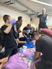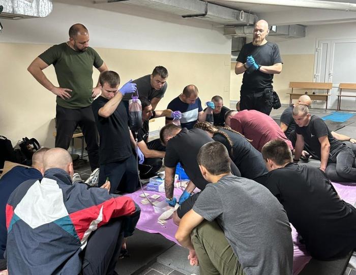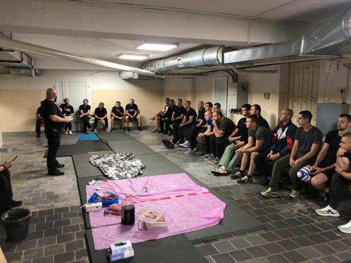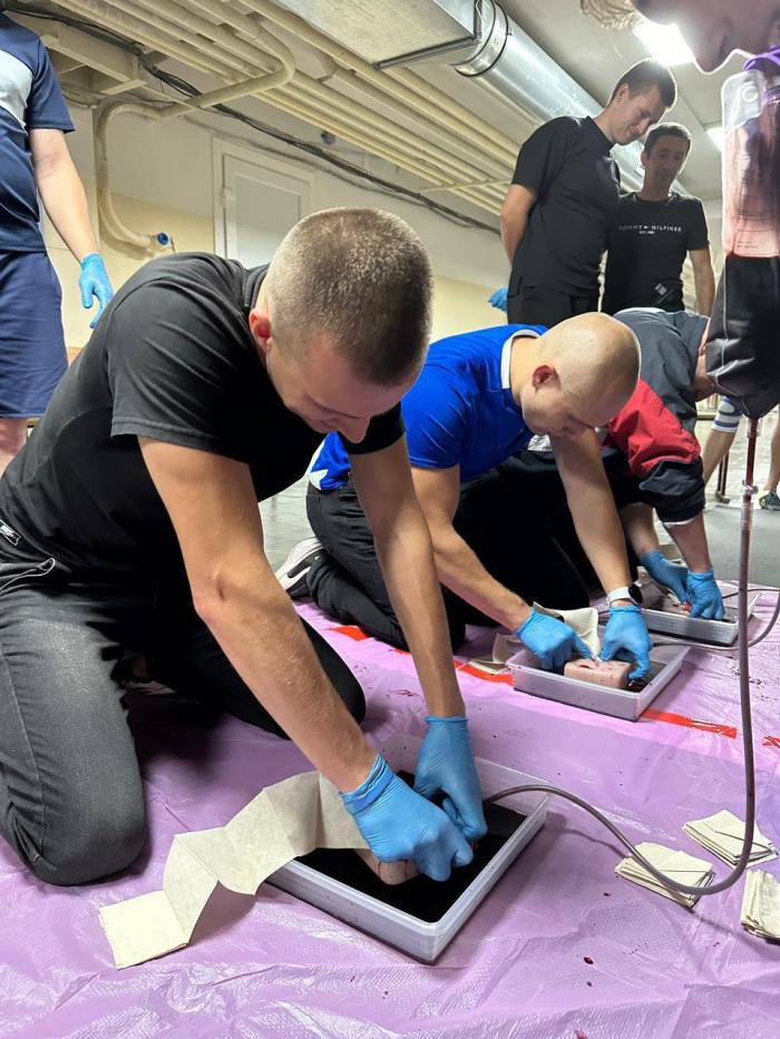 Слухачі первинної професійної підготовки за спеціалізацією «Поліція особливого призначення», які проходять навчання в інституті післядипломної освіти ХНУВС, продовжують отримувати знання і вміння на практичних заняттях із тактичної медицини. Курс рівня ASM та BLS провели керівник ГО «Центр тактичної медицини СХІД їм. Ефрема Мухіна» Володимир Ткалич та інструктор Максим Кравченко. Спільно зі слухачами вони відпрацювали тактику дій поліцейського під час надання першої допомоги військовим і цивільним громадянам: масивна кровотеча, накладання турнікетів, трансфузія крові в польових умовах, переміщення / перенесення пораненого та допомога у ході евакуації.