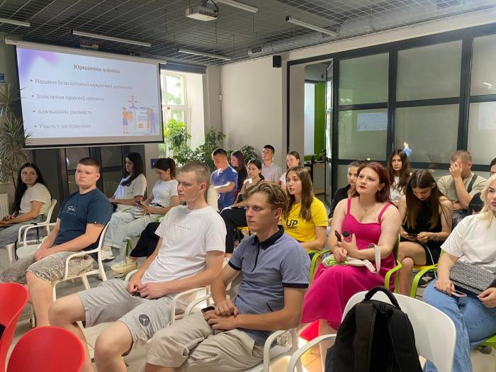 Микола Кирилюк розповів про громадський активізм і його види, про активну соціальну позицію молоді в умовах воєнного стану. Спікер розглянув актуальні можливості для молоді у соціальній сфері та на яких інформаційних ресурсах можна з ними ознайомитись. Він проаналізував основні напрями діяльності юридичних клінік Вінниччини, відзначивши плідне партнерство та унікальні спільні проєкти з відділенням Юридичної клініки ХНУВС у м. Вінниця.