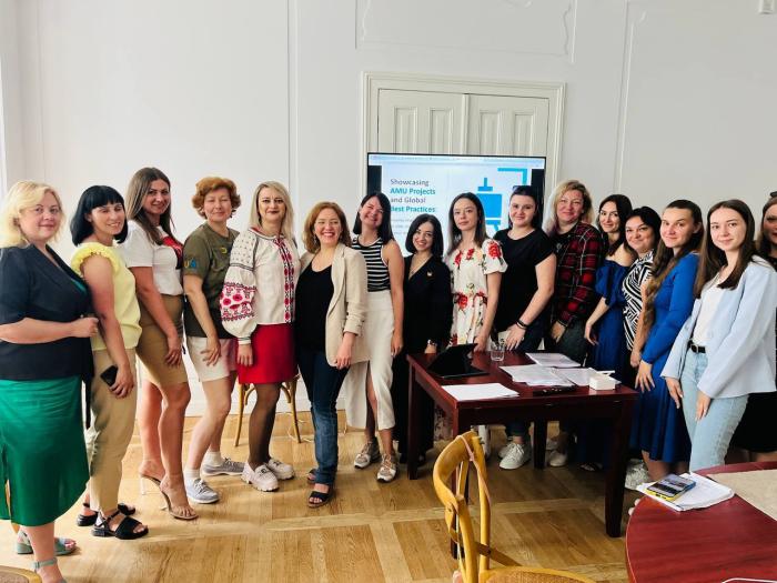 Докторка Іоанна Домагала ознайомила з сучасним станом процесу інтернаціоналізації, локальними та глобальними тенденціями у вищій освіті, рейтингами у сфері вищої освіти та особливостями процесу інтернаціоналізації у власній країні.