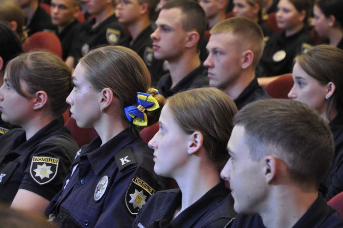 З вітальним словом до присутніх звернулась заступниця директора Департаменту освіти, науки та спорту МВС України Лариса Васянович: «Пишаюсь тим, що я тут, на Поділлі, маю нагоду привітати вас із професійним святом – Днем Національної поліції України. Зараз дуже складний час, але я впевнена, що ми впораємося, дійдемо до перемоги, разом відбудуємо нашу незалежну Україну. Дорогі курсанти, ви обрали нелегкий шлях. Сумлінно навчайтеся, отримуйте знання, набувайте навичок, щоб стати професіоналами. Служіть із честю, захищайте український народ, будьте гідними наших Героїв, пам’ятайте, що головний критерій оцінки діяльності Національної поліції – довіра населення. Бажаю вам міцного здоров’я і наснаги, нам всім – Перемоги, щоб ми багато років мали можливість служити та захищати на теренах нашої незалежної країни. Слава Україні! Героям Слава!».