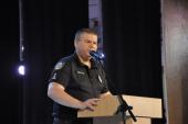 Від імені ректора Харківського національного університету внутрішніх справ, генерала поліції третього рангу Валерія Сокуренка присутніх привітав декан факультету №1 Віталій Романюк: «Шановні викладачі, курсанти, гості! Хочу подякувати керівництву держави, Міністерства внутрішніх справ, Національної поліції України, органів державної влади та місцевого самоврядування, викладачам, які в цей нелегкий час допомагають нам готувати майбутніх правоохоронців. Впевнений, що ті знання, які отримують курсанти від наших викладачів є актуальними, адже кожний з них має великий досвід практичної роботи. Дякую курсантам, що обрали Харківський національний університет внутрішніх справ зараз, під час третього року повномасштабного вторгнення. Особливу подяку висловлюю нашим ветеранам, які діляться своїм досвідом у формуванні майбутнього покоління. Бажаю всім міцного здоров’я, Божої благодаті і великої Перемоги! Слава Україні!».