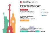 Фахівчиня відділу міжнародного співробітництва ХНУВС Інна Савіна пройшла онлайн-курс з англійської мови на платформі Lingva.Skills та отримала сертифікат, що підтверджує рівень володіння англійською мовою В1+. Курс поєднав теоретичний матеріал і практичні завдання. В основі методики – інтуїтивне відчуття мови, вміння нею користуватися. Інтерактивна форма викладення навчального матеріалу, наявність пояснень та, у разі потреби, підказок, дозволяє користувачеві під час кожного уроку відпрацювати різні граматичні конструкції з англійської чи німецької мови. Після завершення теми та всіх навчальних модулів користувач має пройти тест для отримання сертифікату про закінчення рівня.
