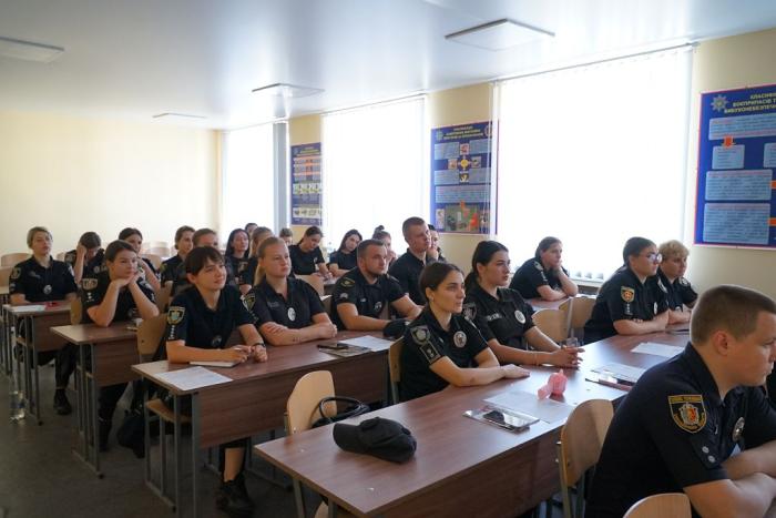 Директорка Кам’янець-Подільського ліцею Альона Кузема разом із доценткою кафедри поліцейської діяльності та публічного адміністрування факультету № 3 Діаною Кірікою провели бінарне заняття для майбутніх офіцерів служби освітньої безпеки на тему «Паспорт безпеки закладів освіти. Визначення, наповнення та участь поліцейських СОБ у його формуванні».