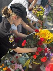 Здобувачі вищої освіти факультету № 2 Харківського національного університету внутрішніх справ взяли участь у молодіжному флешмобі пам’яті жертв терору, приуроченого до роковини з дня ракетного обстрілу площі Перемоги у м. Вінниця 14 липня 2022 року.