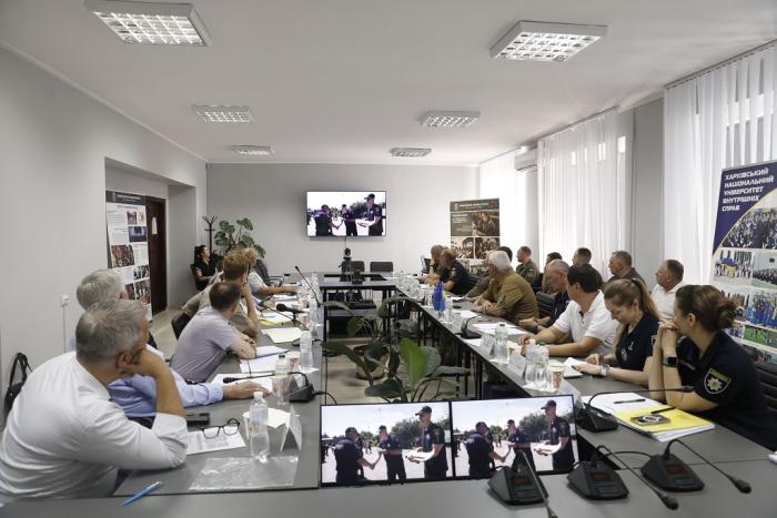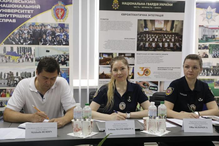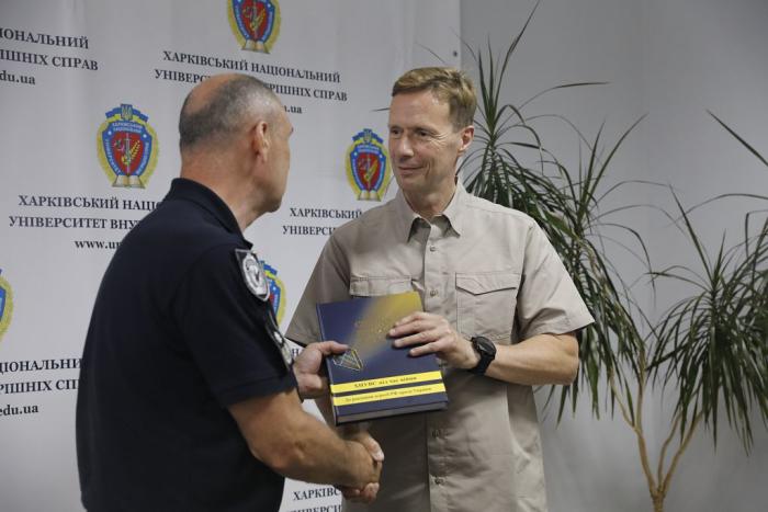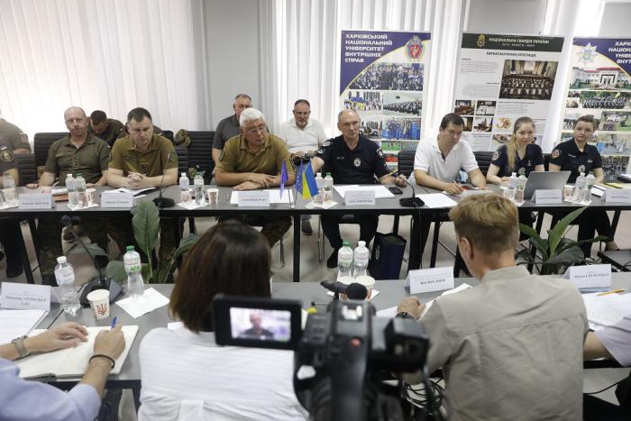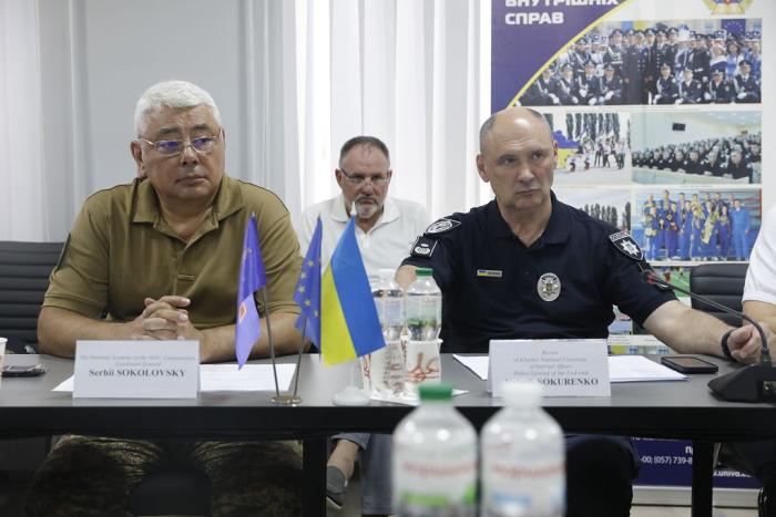 Під час зустрічі із делегацією Консультативної місії Європейського Союзу в Україні ректор університету Валерій Сокуренко відзначив тривалу співпрацю, зокрема у межах проєкту міжнародної технічної допомоги «Операційна підтримка у наданні стратегічних консультацій щодо реформування сектору цивільної безпеки України». Ректор ознайомив присутніх з особливостями функціонування Харківського поліцейського університету в умовах воєнного стану. Начальник Національної Академії Національної гвардії України Сергій Соколовський розповів про дислокацію підрозділів Академії та забезпечення освітнього процесу в умовах війни. У свою чергу, голова КМЄС з реформування сектору цивільної безпеки України Рольф Холмб окреслив напрями діяльності місії та наголосив на необхідності подальшої співпраці між інституціями. У зустрічі взяли участь: керівниця операційного департаменту КМЄС в Україні Розалін Шихан, керівник мобільного підрозділу КМЄС в Україні Ове Уруп-Мадсен, керівник відділу з питань поліцейської діяльності КМЄС в Україні Флеммінг Лау, начальник секції служби Західного територіального управління, полковник Руслан Босий та командир в/ч 3008, полковник Валентин Сірак.