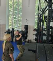 Викладачі розповіли, що в університеті створені умови для залучення учасників бойових дій та ветеранів війни до фізкультурно-оздоровчих, спортивних заходів і рухової активності. Вони ознайомили з можливостями спортивного комплексу – кросфіт станцією, завдяки якій можна розвивати силові якості, тренувати витривалість, швидкість, гнучкість. Військовослужбовиці виконали на тренажерах елементи фізичних вправ. Після тренування працівники кафедри запросили наших захисників і захисниць на щотижневі заняття спортом, що проходять в університеті.