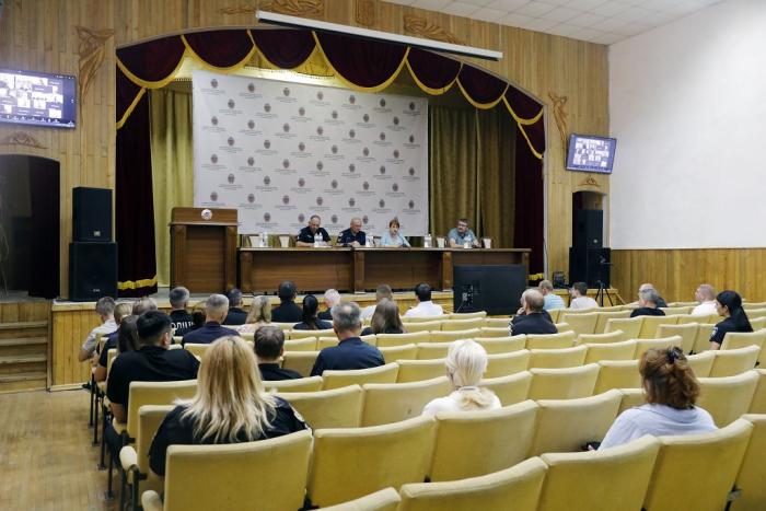Відбулася робоча нарада керівників структурних підрозділів закладу вищої освіти, яку провела голова комісії, перший заступник директора Департаменту освіти, науки та спорту Міністерства внутрішніх справ України Лариса Васянович. Вона зазначила, що перевірка проходила на виконання вимог наказу МВС України від 17.06.2024 № 716 «Про проведення комплексної планової перевірки Харківського національного університету внутрішніх справ». Відповідно до Плану-завдання вивчалися питання усіх напрямів діяльності університету. Лариса Василівна подякувала колективу закладу вищої освіти за конструктивну взаємодію, наголосила на основних прорахунках у роботі університету, які були виявлені за результатами комплексного інспектування, побажала подальшої плідної роботи в підготовці фахівців для Сил безпеки та оборони, найскорішої перемоги над ворогом та повернення до рідного Міста-Героя Харкова на основну навчальну базу. Ректор, генерал поліції третього рангу Валерій Сокуренко запевнив, що всі рекомендації будуть обов’язково враховані у діяльності університету.