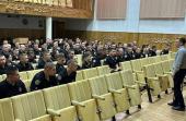 Для здобувачів вищої освіти факультету № 2 Харківського національного університету внутрішніх справ куратор з виховної роботи Андрій Прохоров провів бесіду на тему «Загрози національній безпеці України в економічній, екологічній інформаційній, гуманітарній, культурній сферах: шляхи виходу з проблемних ситуацій у глобальному контексті».