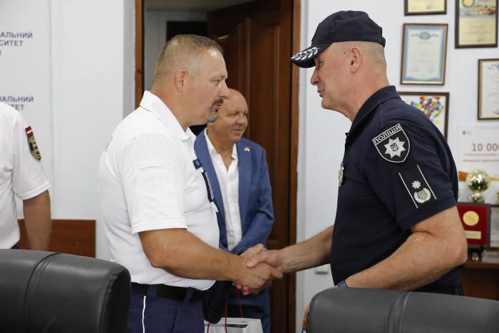 Представники Латвійської Республіки зустрілися з ректором університету, генералом поліції третього рангу Валерієм Сокуренком, який ознайомив з навчальною та матеріально-технічною базою університету, історією створення Харківського поліцейського вишу, особливостями організації освітнього процесу в умовах воєнного стану, окреслив виклики, що стоять перед здобувачами вищої освіти та науково-педагогічним складом й висловив упевненість щодо продовження співпраці, яка позитивно вплине на підвищення професійного рівня працівників закладу вищої освіти, сприятиме отриманню ними нових знань та навичок, обміну досвідом задля більш ефективної та якісної підготовки працівників правоохоронних органів в Україні. Голова Державної поліції Латвійської Республіки генерал Армандс Рукс відзначив, що плідна й дієва співпраця однаково важлива для обох країн і співробітництво із Харківським національним університетом внутрішніх справ – це ще один крок на шляху встановлення партнерських відносин у напрямі обміну досвідом в освітній та науковій сферах.