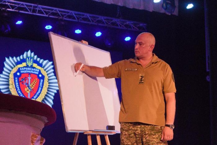 Напередодні Дня Державного Прапора і Дня Незалежності України проректор зустрівся із першокурсниками табірного збору, курсантами навчально-наукових інститутів Харківського національного університету внутрішніх справ.