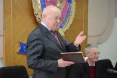 Відкрив засідання ректор навчального закладу генерал поліції третього рангу Валерій Сокуренко. Він привітав членів ХОО НСЖУ в стінах навчального закладу, підкресливши актуальність проведення даного заходу, побажав плідної роботи та продовження співпраці з університетом, а також представив присутнім склад президії, до якої окрім ректора увійшли голова ХОО НСЖУ Олександр Голуб, академік, голова правової комісії ХОО НСЖУ Олександр Бандурка.