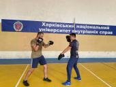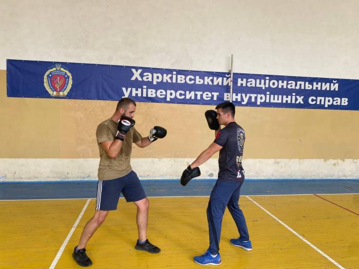 Із ветераном війни, учасником бойових дій Богданом Дармограєм заняття з елементами боксу провів викладач кафедри спеціальної фізичної підготовки ННІ №2, майстер спорту України з таїландського боксу Муей-Тай Антон Черніков.