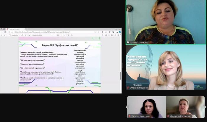 Доцентка кафедри психології та соціології ННІ №5 Лілія Бондаренко взяла участь в онлайн-форумі «Ментальне здоров’я та емоційний інтелект». Учасники форуму розглянули основні інструменти управління власними емоціями, обговорили навички формування високого рівня емоційного інтелекту, особливості зв’язку між емоційним інтелектом і ментальним здоров’ям. Вони відпрацювали навички саморегуляції, самомотивації, а також підвищили рівень стресостійкості до переживання наслідків кризових подій за допомогою мобілізації внутрішніх і зовнішніх ресурсів.