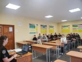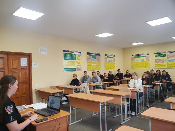 Старші викладачки кафедри мовної підготовки ХНУВС Віта Филипська та Лариса Сазанова разом із слідчою слідчого відділення поліції №1 Первомайського районного відділу поліції ГУНП у Миколаївській області Вікторією Білою провели для курсантів 4 курсу ННІ №1 бінарне заняття на тему «Обшук та конфіскація».
