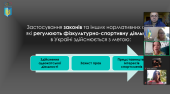 Т.в.о. завідувача кафедри юридичних дисциплін Олексій Шуміло продовжив зустріч із презентацією: «”Спортивне право” – самостійна галузь права, чи “право на спорт”?», що була присвячена питанню: чи існують «спортивно-правові» відносини як складові окремої комплексної галузі права, чи це лише міжгалузевий правовий інститут. Свій виступ він побудував на аналізі чинного спортивного законодавства та на судовій практиці Європейського суду з прав людини.