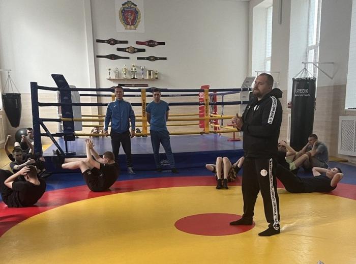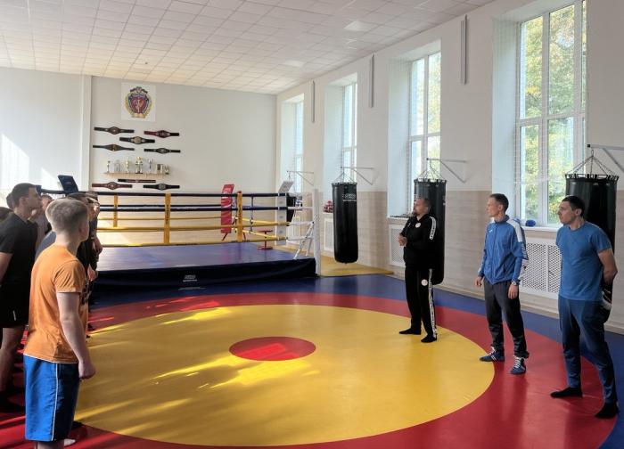 Разом із заслуженим тренером України заняття провели завідувач кафедри спеціальної фізичної підготовки Дмитро Константинов і старший викладач цієї ж кафедри Михайло Іншеков.