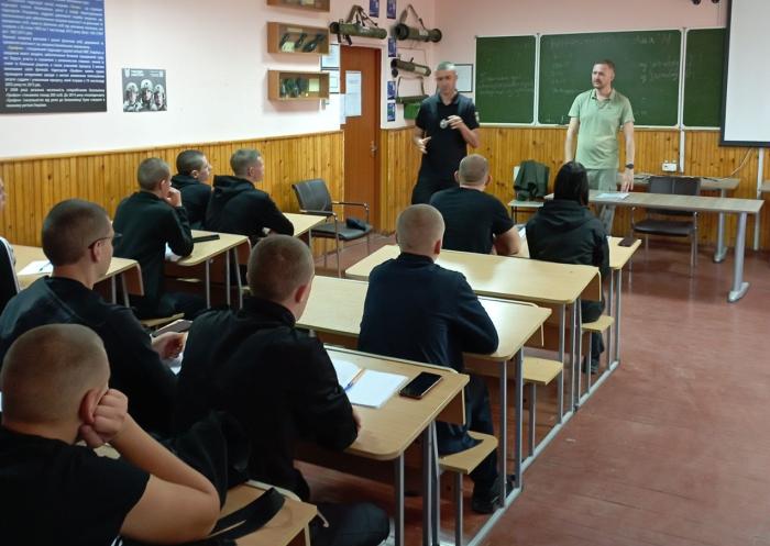 За такою темою пройшло бінарне заняття для курсантів ННІ №2, які відпрацювали способи проведення поверхневої перевірки, а також техніку одягання кайданок у різних положеннях. Практичне заняття провели інструктор тренінгового центру ГУНП у Вінницькій області Олексій Пацалюк разом із завідувачем кафедри тактико-спеціальної підготовки ННІ №2 Миколою Боровиком і старшим викладачем цієї ж кафедри Валерієм Швецем. Вони ознайомили курсантів з особливостями службової підготовки працівників Національної поліції.
