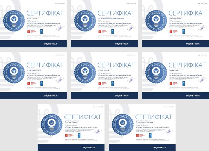 Представники кафедри кримінального права і кримінології ННІ №1 успішно пройшли курс «Права людини для держслужбовців» через платформу масових відкритих онлайн-курсів Prometheus. Здобуті знання використовуватимуться під час викладання навчальної дисципліни «Кримінальне право» – обов’язкової компоненти освітньо-професійної програми першого (бакалаврського) рівня вищої освіти за спеціальностями «Право» та «Правоохоронна діяльність». Однією з важливих складових ефективної діяльності підрозділів Національної поліції України в умовах воєнного стану є обізнаність про систему, гарантії, механізми захисту прав людини, зокрема кримінально-правовими засобами. Вимушені, обумовлені правовим режимом воєнного стану, обмеження прав людини повинні бути обґрунтованими, доцільними та законними. Національна поліція стоїть на заваді поширенню свавілля й нігілізму, у критичний для української нації історичний період забезпечує дієвість принципу верховенства права у державному управлінні.