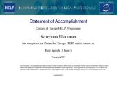 Докторантка відділу організації освітньо-наукової підготовки (докторантура та ад’юнктура (аспірантура)) Катерина Шаповал успішно пройшла курс «Мова ненависті» на платформі Європейської програми освіти з прав людини для юристів (HELP). Тематика курсу охоплювала широкий спектр питань, серед яких концепції мови ворожнечі, боротьба з ненавистю, правова база боротьби з мовою ворожнечі, аналіз рішень Європейського суду з прав людини, а також міжнародний досвід боротьби з ненавистю, що виражається через мову.