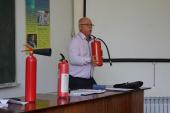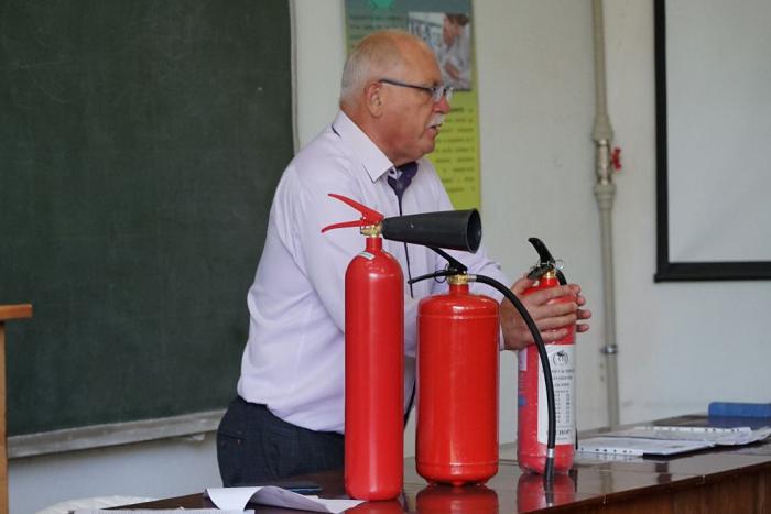 Зі здобувачами освіти ННІ №1, №4 та №5 зустрівся провідний фахівець групи протипожежної безпеки Харківського національного університету внутрішніх справ Юрій Чухрій. Він ознайомив курсантів і студентів із основними правилами пожежної безпеки, нагадав вимоги щодо пожежної безпеки у побуті, роз’яснив алгоритм дій на випадок виникнення пожежі у приміщенні, продемонстрував як у разі потреби користуватися первинними засобами пожежогасіння, зокрема різними видами вогнегасників. Юрій Чухрій навчив здобувачів освіти, як поводитися з вогненебезпечними предметами під час їх виявлення.