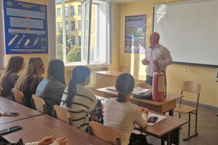 Про стан та проблеми охорони праці, її гігієну, виробничу санітарію та техніку безпеки розповіла студентам і курсантам провідна спеціалістка із питань охорони праці Світлана Гетманчук. Набуті здобувачами освіти знання сприятимуть ефективному вирішенню завдань професійної діяльності з обов’язковим урахуванням вимог охорони праці, спрямованих на збереження їх життя, здоров’я та працездатності.