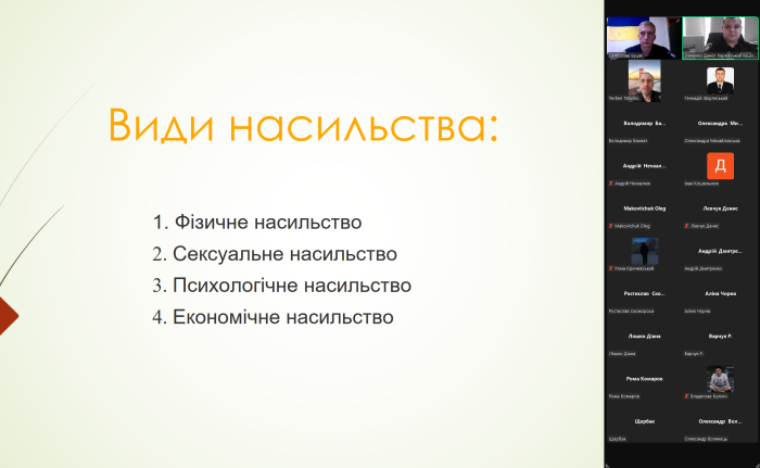 Представники сектору протидії домашньому насильству ГУНП у Вінницькій області разом із Харківським національним університетом внутрішніх справ та ГО «Молодіжна організація починаючих лідерів» провели круглий стіл на тему «Аналіз правового реагування працівників поліції на випадки домашнього насильства під час військової агресії в Україні: ознаки та види домашнього насильства».