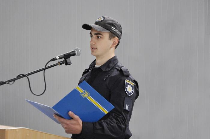 Вірно служити Українському народові, дотримуватися Конституції та законів України, втілювати їх у життя, поважати та охороняти права і свободи людини, честь держави, з гідністю нести високе звання поліцейського та сумлінно виконувати свої службові обов’язки обіцяли першокурсники – представники майже усіх областей України. У багатьох із них батьки, рідні або близькі несуть службу у складі Сил безпеки та оборони, захищають незалежність і територіальну цілісність нашої країни. На жаль, чимало й тих, чиї батьки загинули на полі бою, поклали свої життя заради майбутньої перемоги.
