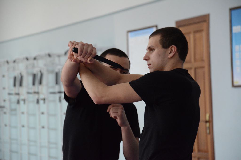 Під час відвідування спортивного залу № 1 грузинські колеги переглянули демонстрацію працівниками та курсантами університету практичних вправ, направлених на вирішення екстремальних ситуацій під час службових дій, рух і перешикування малих бойових груп, бойові шикування при групових порушеннях публічної безпеки, спеціальні та інші вправи рухово-координаційної спрямованості при обеззброєнні тощо. Гості відвідали заняття курсантів з вогневої, фізичної, тактико-спеціальної підготовки тощо.