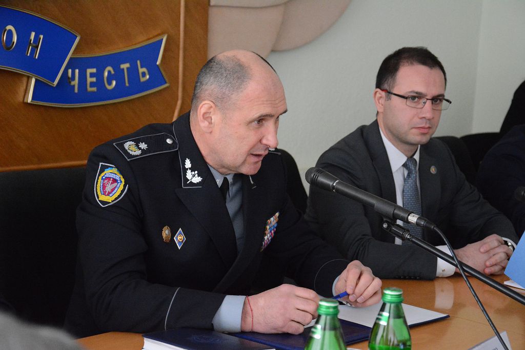 Ректор Академії МВС Грузії Гіві Міканадзе та його радник Давід Гелашвілі, які з робочим візитом відвідали Харківський національний університет внутрішніх справ, ознайомилися з матеріально-технічною базою університету.