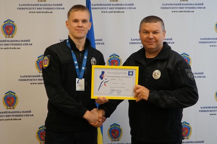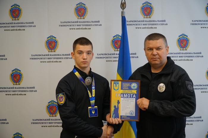 Вони вручили нагороди переможцям Кубку асоціації з гирьового спорту України курсантам Андрію Світличному, Володимиру Гриценку, Максиму Кіфюку; бронзовому призеру Кубку України із кікбоксингу WAKO курсанту Роману Савчуку; призерам відкритого Кубку Хмельницької області із кікбоксингу WAKO – слухачам магістратури Єгору Скуріхіну та Аліні Ломовій, курсантам – Віталію Донченку, Валерію Горпенку, Назару Лосю, Роману Савчуку; призерам чемпіонату Європи з французького боксу Сават – слухачу магістратури Богдану Рососі та курсанту Валентину Крамаренку; курсантці Анастасії Штанько, яка увійшла до складу збірної команди ХНУВС із легкої атлетики, команда посіла ІІ загальнокомандне місце у легкоатлетичному марафоні «Естафета поколінь».