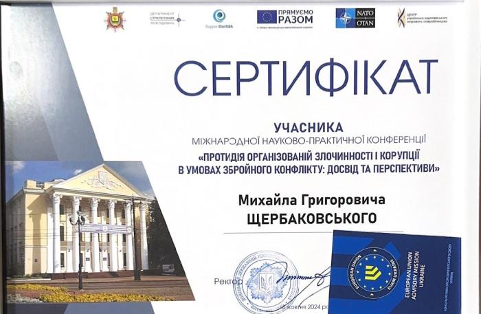 Завідувач кафедри кримінального процесу, криміналістики та експретології ННІ №5, доктор юридичних наук, професор Михайло Щербаковський та професор кафедри оперативно-розшукової діяльності і розкриття злочинів ННІ №2, доктор юридичних наук, професор Руслан Степанюк долучилися до Міжнародної науково-практичної конференції на тему «Протидія організованій злочинності і корупції в умовах збройного конфлікту», що пройшла у Донецькому державному університеті внутрішніх справ. У роботі конференції взяли участь понад 100 вчених і практиків: представники Національної поліції України, Служби безпеки України, прокуратури, закладів вищої освіти, а також науковці з Бельгії, Литви та Фінляндії.