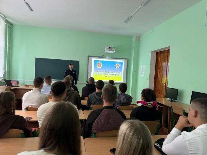 Першокурсники поспілкувалися зі школярами, вчителями та керівництвом освітніх закладів, в яких нещодавно навчались. Вони розповіли учням про те, чому обрали професію правоохоронця, як готувалися до вступних іспитів, поділилися своїми враженнями про навчання та службу. Майбутні випускники також дізналися про інститути та спеціальності, за якими готують фахівців, про побут і дозвілля курсантів, наукові гуртки і спортивні секції, що діють у університеті, про участь курсантів у волонтерських заходах – плетінні маскувальних сіток, донації крові, відвідуванні поранених бійців тощо. Такі зустрічі відбулися у Вінницькій, Житомирській, Полтавській, Миколаївській та Хмельницькій областях.