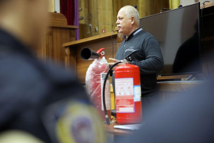 Провідний фахівець групи протипожежної безпеки Харківського національного університету внутрішніх справ Юрій Чухрій ознайомив курсантів із основними правилами пожежної безпеки, нагадав вимоги щодо пожежної безпеки у побуті, роз’яснив алгоритм дій на випадок виникнення пожежі у приміщенні, продемонстрував як у разі потреби користуватися первинними засобами пожежогасіння, зокрема різними видами вогнегасників. Він розповів молоді про заходи безпеки та правила поведінки у разі виявлення вогненебезпечних предметів.