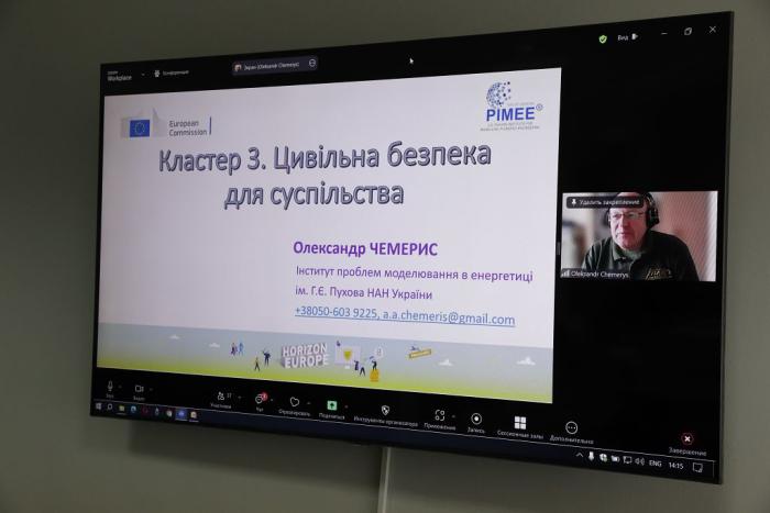 Олексій Сердюк ознайомив учасників заходу зі структурою порталу Європейської Комісії та офісу Горизонту Європи в Україні, існуючими напрямами проєктів Програми «Горизонт Європа», детально розглянув актуальні проєктні пропозиції за кластером 3 «Цивільна безпека для суспільства» за такими напрямами: боротьба зі злочинністю і тероризмом, система подолання катастроф, кібербезпека, підтримка досліджень безпеки та інновацій, дослідження інфрастуктури, а також ознайомив присутніх з особливостями пошуку іноземних і національних партнерів для участі в міжнародних наукових проєктах, формування консорціуму для участі у Програмі «Горизонт Європа», видами й термінами розгляду заявок Європейською Комісією тощо.
