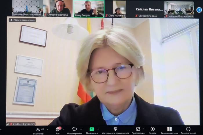 Тетяна Матюшкова ознайомила учасників із джерелами інформації про Рамкову програму Європейського Союзу з досліджень та інновацій «Горизонт Європа», розповіла про досвід ХНУВС у створенні мережі дослідників з метою їх активного долучення до спільної розробки наукових проєктів, пошуку партнерів, подання спільних заявок на участь у певних програмах тощо.
