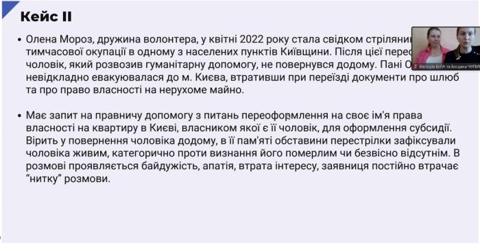 За такою темою пройшов воркшоп, в якому взяли участь слухачі магістратури навчально-наукового інституту №1 Вікторія Біла та Богдана Чупира. Захід був спрямований на підвищення професійних компетенцій у сфері правничої діяльності щодо роботи з постраждалими внаслідок збройного конфлікту.