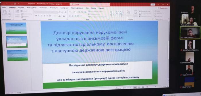 Чергову консультацію з правових питань за зверненням військовослужбовця провели на платформі ZOOM консультанти ННІ №5 Юридичної клініки ХНУВС. Вони надали допомогу у питаннях укладення договору дарування нерухомого майна, проконсультували щодо особливостей державної реєстрації прав на нерухоме майно на сучасному етапі та соціального захисту військовослужбовців і членів їх сімей.