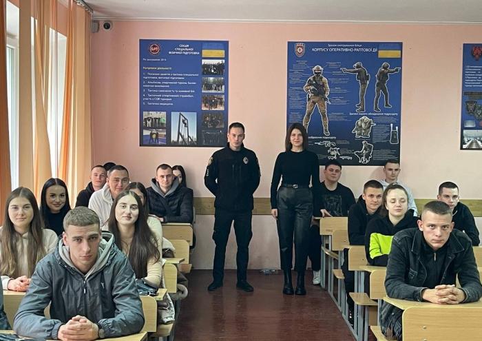 Доцентка кафедри адміністративної діяльності ННІ №3 Юлія Бугайко та в.о. інспектора відділу службових розслідувань Управління головної інспекції ГУНП в Житомирській області Дмитро Дмитрюк провели для курсантів ННІ №3 бінарне заняття на тему «Контрольна діяльність підрозділів ювенальної превенції». Інспектор розповів про особливості здійснення контролю ювенальними поліцейськими за виконанням дітьми-кривдниками спеціальних заходів протидії домашньому насильству, суб’єктами підприємницької діяльності - вимог законодавства щодо заборони продажу неповнолітнім особам алкогольних, слабоалкогольних напоїв і тютюнових виробів, а також дотримання обмежень перебування дітей у нічний час у розважальних закладах і закладах громадського харчування. Дмитро Дмитрюк звернув увагу здобувачів освіти на типові помилки ювенальних поліцейських у документуванні правопорушень, суб'єктами яких є неповнолітні, та у веденні обліково-профілактичних справ.
