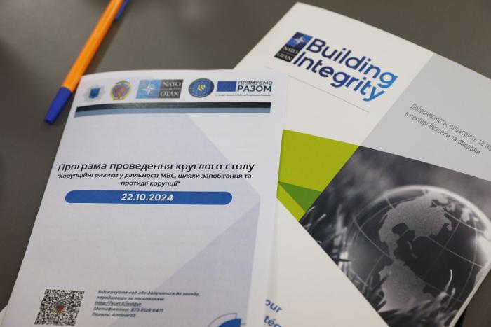 Тема круглого столу - «Корупційні ризики у діяльності МВС, шляхи запобігання та протидії корупції». Захід відкрили: начальник Управління запобігання корупції МВС України, доктор філософії у галузі знань «Право» Анатолій Фодчук та проректор університету, доктор юридичних наук, професор Олександр Музичук.