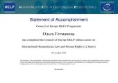 Завідувачка кафедри правового забезпечення підприємницької діяльності та фінансової безпеки ННІ № 5 Ольга Гетманець пройшла онлайн-курс «International Humanitarian Law and Human Rights» на платформі HELP. Міжнародна менеджерка проєкту Ольга Костенко детально представила курс та зазначила, що він дозволяє глибше зрозуміти застосування міжнародного права в умовах збройного конфлікту та готує до вирішення складних правових питань, пов’язаних із захистом прав людини під час війни.