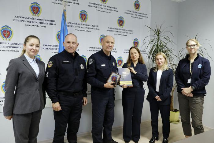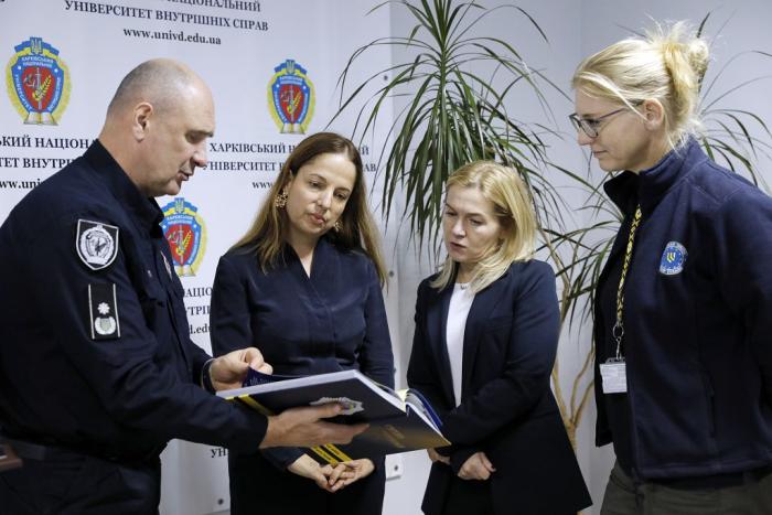 Харківський національний університет внутрішніх справ відвідали представниці КМЄС в Україні – радниця з гендерних питань Анет Швіцке (громадянка Федеративної Республіки Німеччина), радниця з поліцейської діяльності Джеорджина Магнуссен (громадянка Королівства Данія) та експертка з тренінгів Юлія Петрова. Мета візиту – зустріч із керівництвом ХНУВС та визначення напрямів подальшої співпраці.