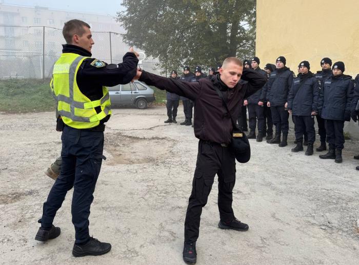 Для здобувачів освіти першого курсу ННІ №1 проведено бінарне заняття за темою «Заходи поліцейського примусу, одягання кайданків із дотриманням заходів особистої безпеки». Старші викладачі кафедри тактико-спеціальної підготовки ННІ №2 Віктор Ясько та Михайло Бамбуляк спільно з поліцейським взводу батальйону патрульної поліції із обслуговування УПП в Хмельницькій області Максимом Татарінцевим навчали майбутніх поліцейських тактиці надягання кайданків. Практичні навички курсанти застосовуватимуть у своїй професійній діяльності під час виконання службових обов’язків, передбачених чинним законодавством.