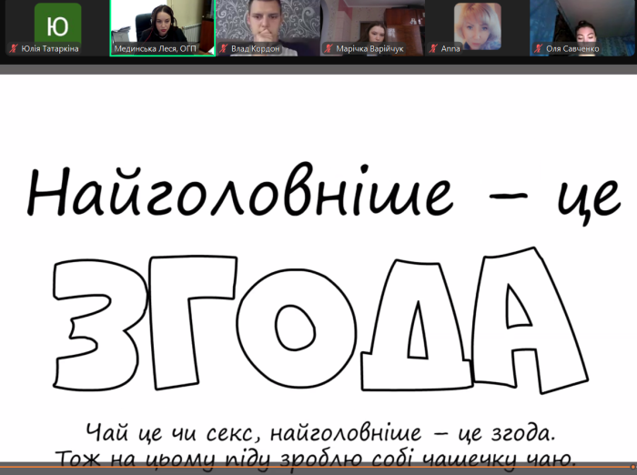 За такою темою для студентів ННІ №5 ХНУВС відбулось бінарне заняття з дисципліни «Кримінальне право». Його провели прокурор відділу захисту інтересів дітей, які є потерпілими у кримінальному провадженні, Управління нагляду за додержанням законів у кримінальному провадженні Департаменту захисту інтересів дітей та протидії домашньому насильству Офісу Генерального прокурора Олеся Мединська разом із доценткою кафедри кримінального права та кримінології ННІ №5 Юлію Татаркіною.